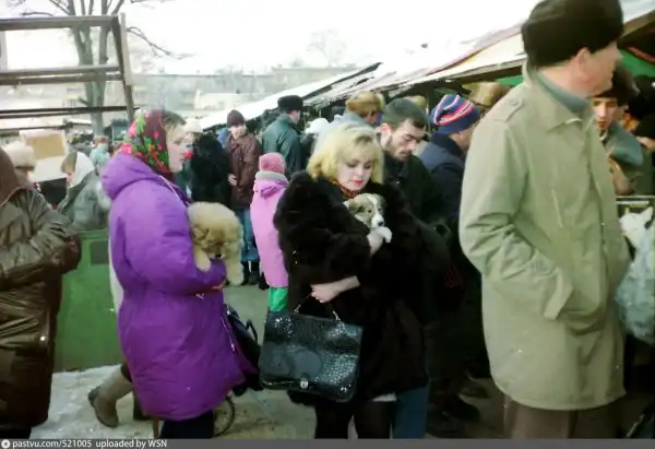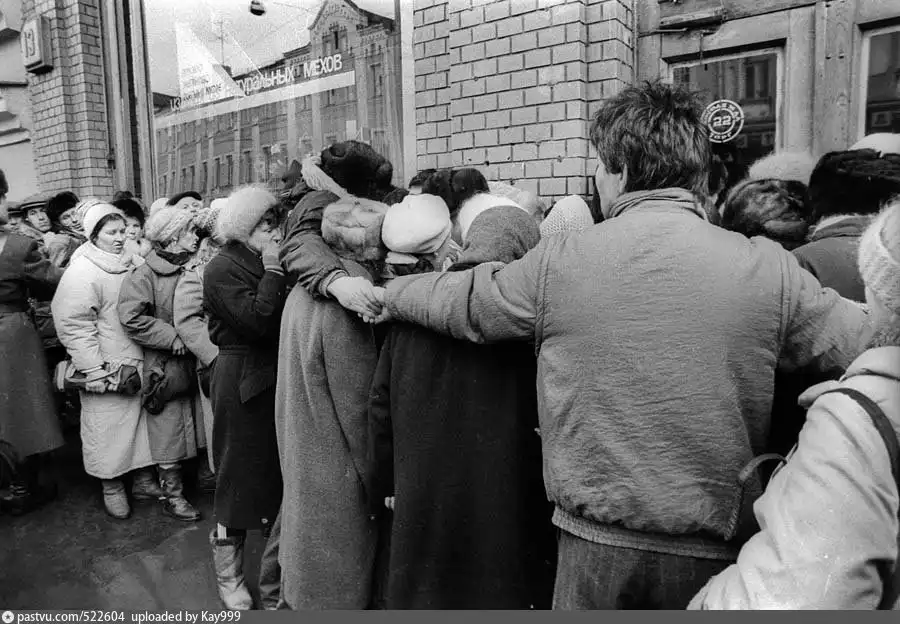 1990 год, народ стоит в очереди в магазин у Сретинских ворот