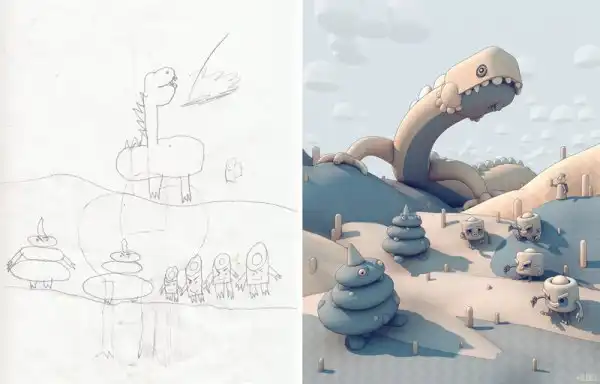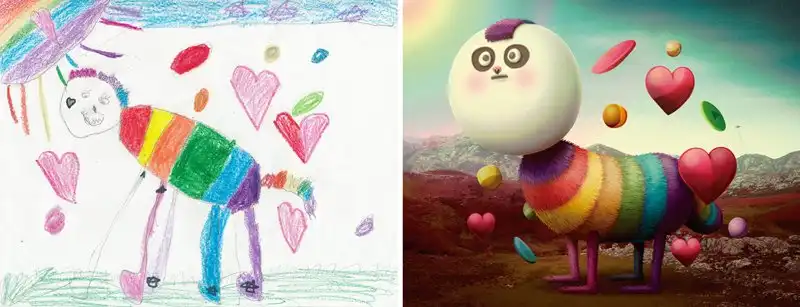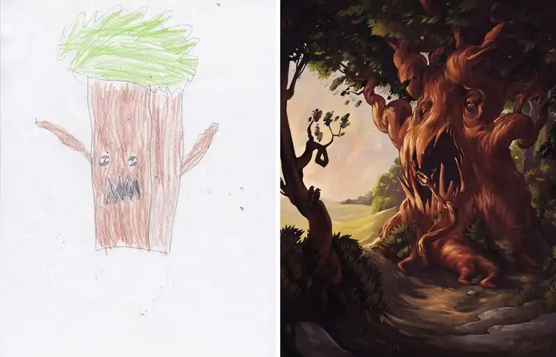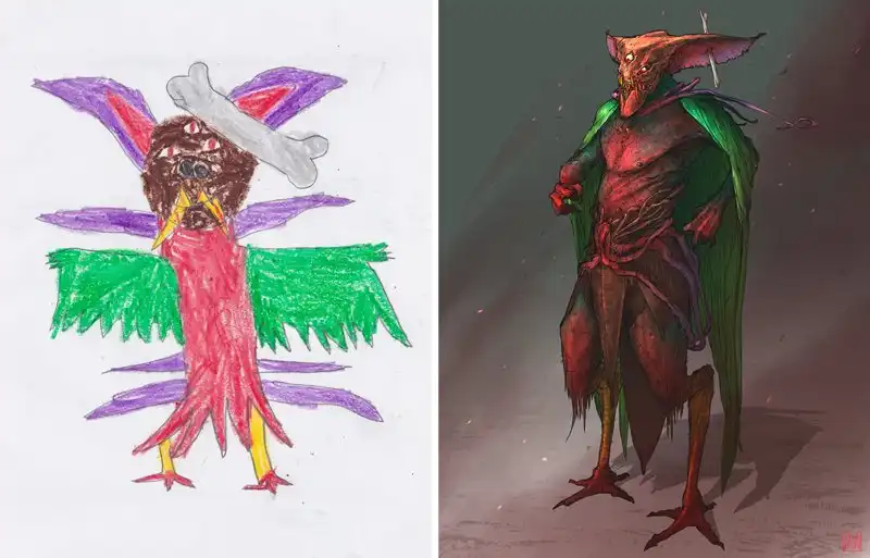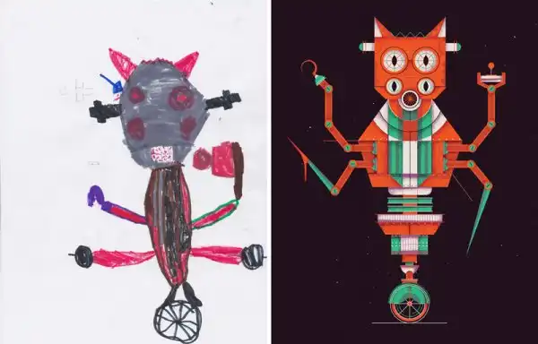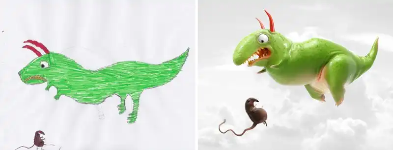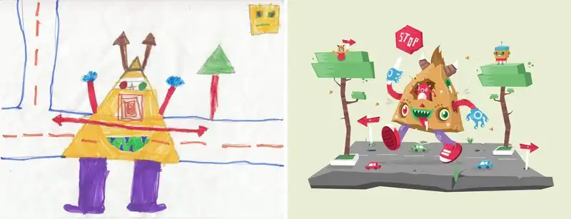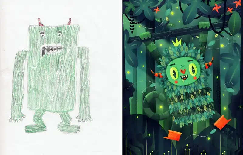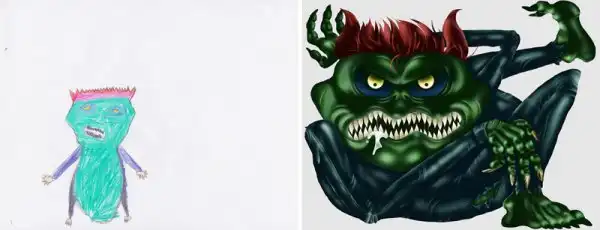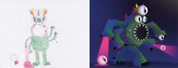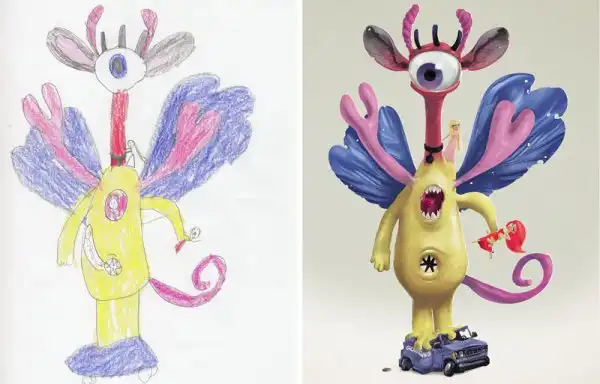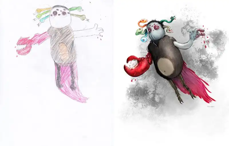 Этот проект называется «Монстр». Идея заключается в том, чтобы объединить усилия детей и взрослых-художников для создания необычных образов. Сначала ребёнок рисует существо «которого на самом деле не существует», а потом профессиональный художник дорабатывает плод детского воображения твёрдой рукой опытного мастера.