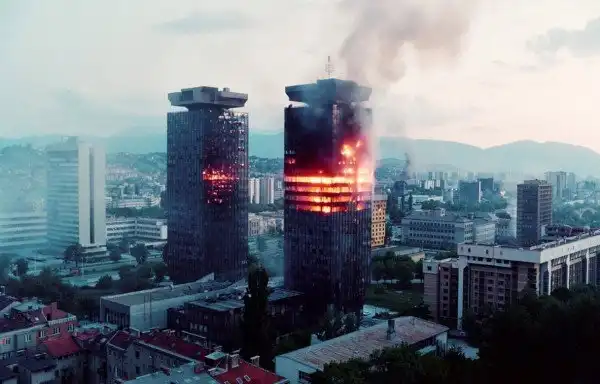 Правда, кое-что напоминает? Только это Сараево в огне под бомбами США и НАТО, Босния, 1993. История - она такая, очень любит шутки шутить, хотя частенько и довольно черные.