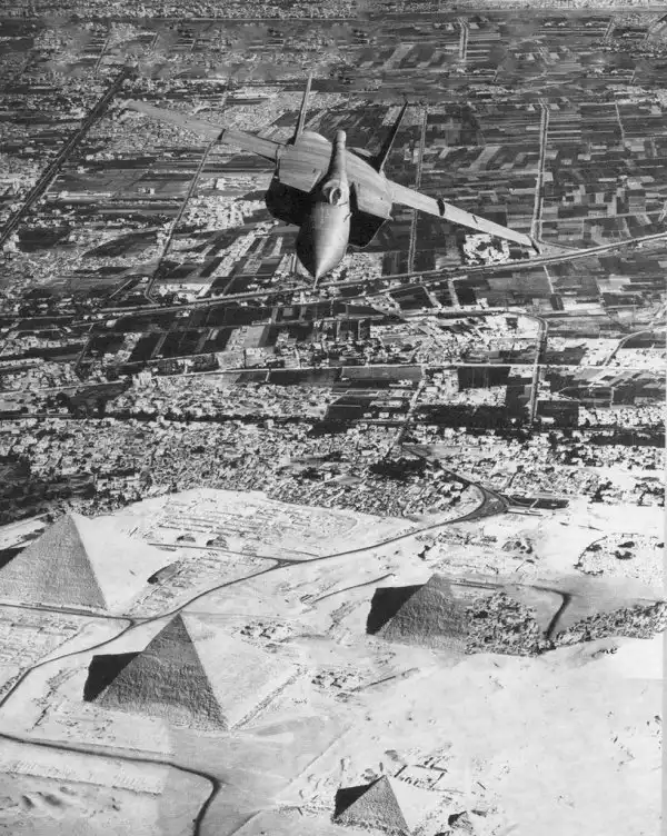 МиГ–25 63–го отдельного авиаотряда ВВС СССР пролетает над пирамидами: