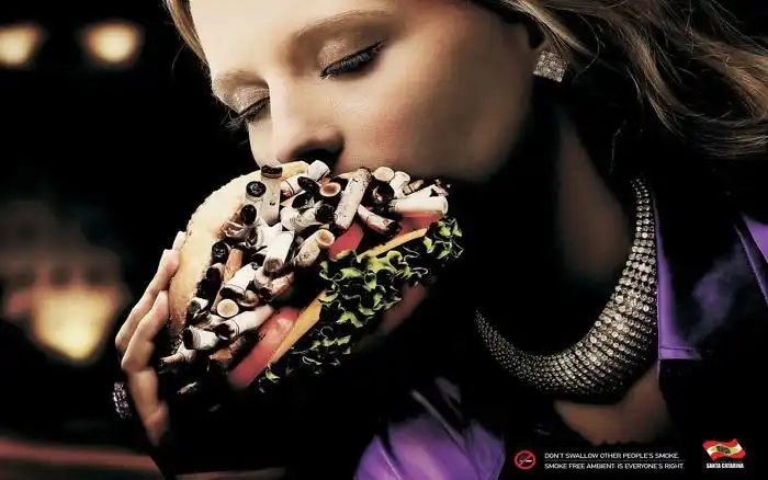 В мире ежегодно тратят огромные средства на антитабачную рекламу, которая побудит людей бросить курить и поможет начинающим курильщикам не пристраститься к пагубной привычке. Далее предлагаем вашему вниманию наиболее эффективную антитабачную рекламу, смысл которой легко понятен, даже несмотря на то, что она нацелена на зарубежных курильщиков.