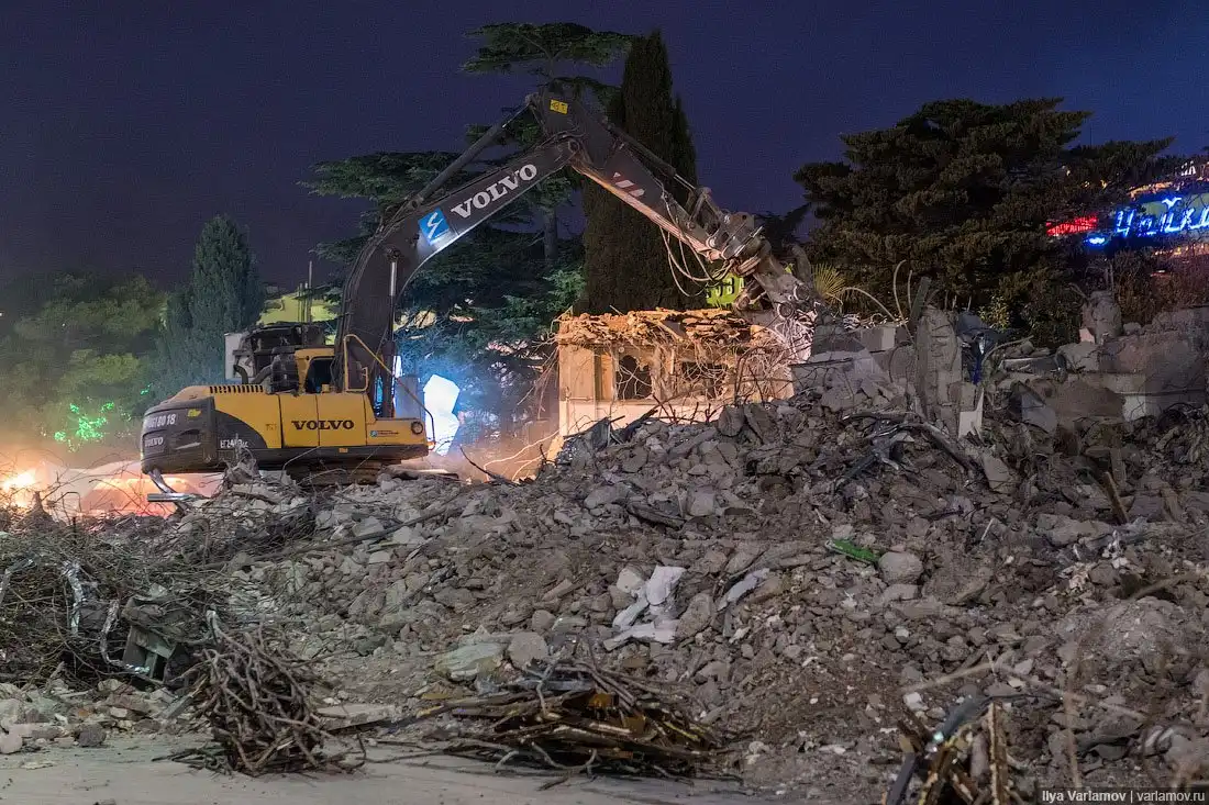 Невероятно просто! Огромная стеклянная хрень (занимала 700 кв. метров набережной) исчезла. Есть надежда, что многочисленные шалманы, кафе и прочий самострой с набережных уберут по всему Крыму. Это большая беда полуострова, и с ней надо бороться.