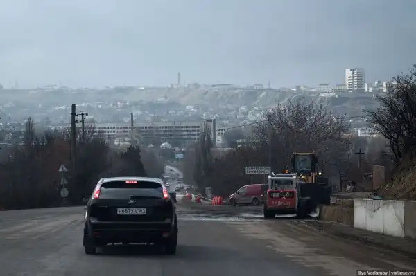 Это как раз объездная вокруг Симферополя, "восточный обход". Его начали ремонтировать в августе, закончить собираются 15 декабря. Больше трёх месяцев водители провели в пробках, теперь им обещают, что скоро всё закончится.