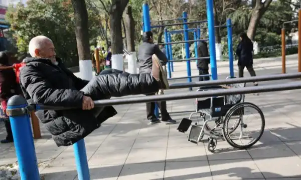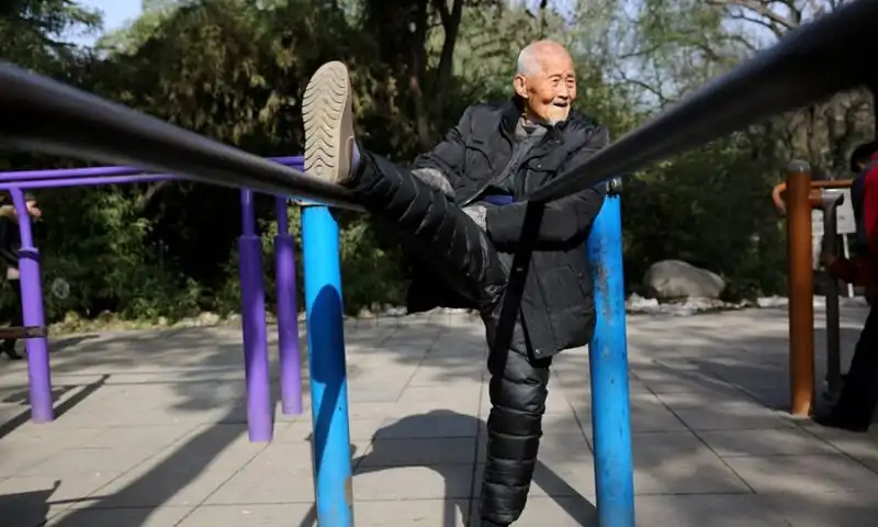 Янг Маолин из китайского города Сиань, родился в далеком 1915 году. Но даже сейчас, когда ему стукнул 101 год, он каждый день отправляется в местный парк и занимается на турниках. После того, как его жена умерла, и он перебрался к детям в город, он чувствовал нехватку физической нагрузки и нашел способ ее компенсировать.