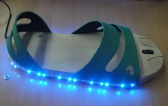 В основе мыши лежит плата обычной компьютерной мыши. На подошве из пробкового дерева расположены две кнопки и ролик, а вокруг установлена светодиодная лента, позволяющая легко найти мышь в темноте. Сам Сергей отметил, что ему понадобилась примерно неделя, чтобы в совершенстве овладеть управлением данным устройством.