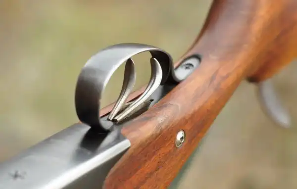 Стволы переламываются без особых усилий. Извлечение гильзы из нарезного ствола требует определённой сноровки. И, если пальцы замёрзшие, становится понятным, почему в штуцерах-переломках применение патронов с фланцевой гильзой предпочтительнее не только с учётом особенностей конструкции оружия.