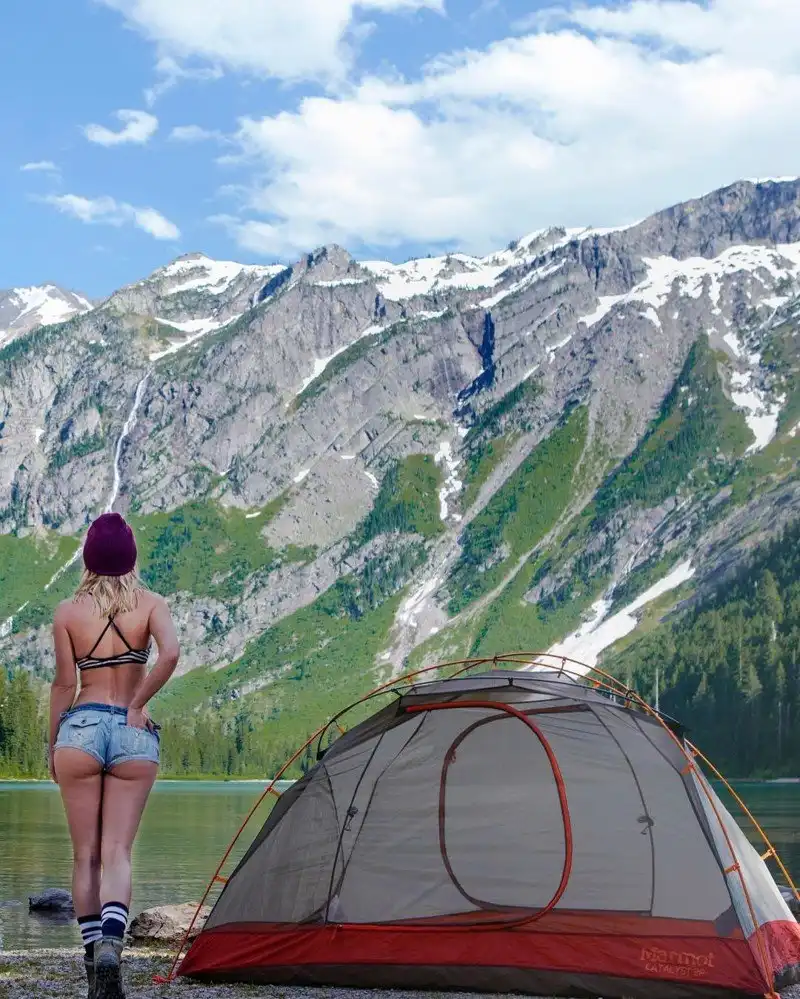 Модель отправилась в турпоход и делает пикантные снимки на лоне природы