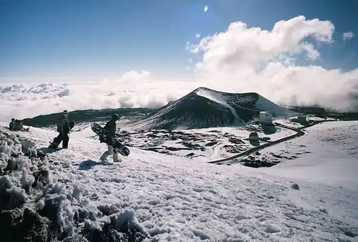В прошедшие выходные на Гавайях в районе двух самых высоких гор Мауна-Лоа и Мауна-Кеа выпало до 60 сантиметров снега. Местные жители не видели снег уже несколько лет, а в таком количестве он и вовсе является здесь редкостью. Далее предлагаем взглянуть на фото, которые стали публиковать туристы и жители Гавайских островов.