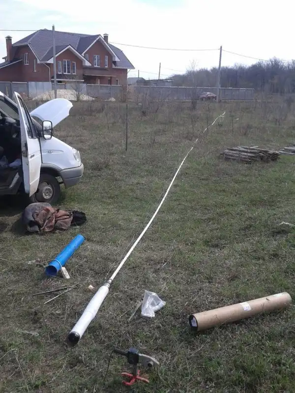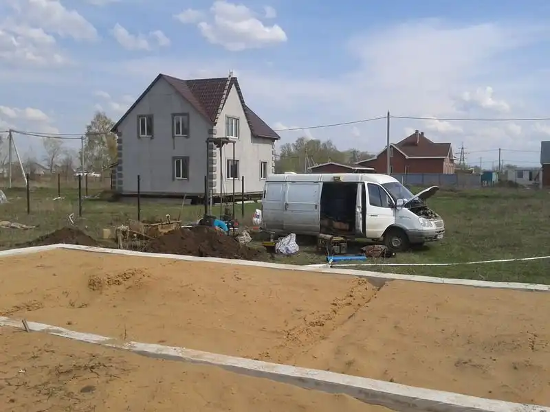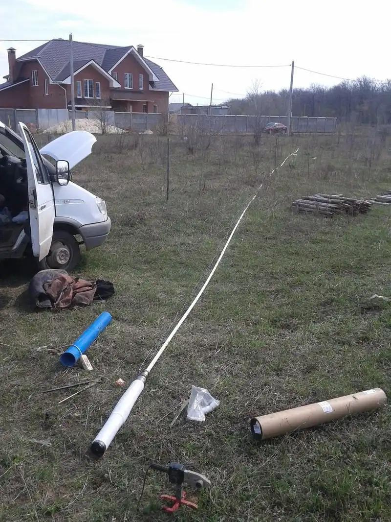 Договорился насчёт бурения скважины. Приехали ребята, выкопали два куба грунта, установили сверло, начали сверлить