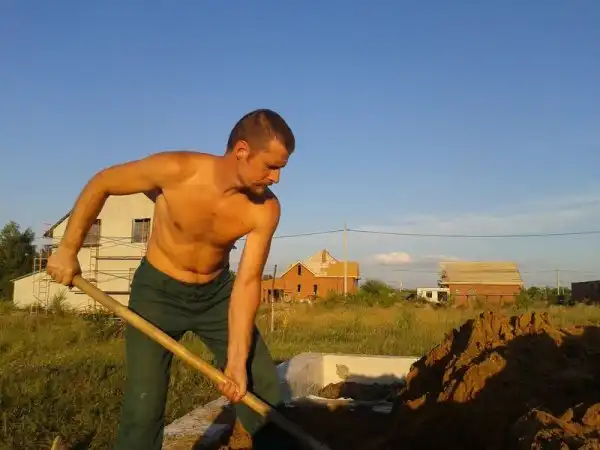 Начали проводить газ в поселке. Я подошел к экскаватору, попросил вырыть мне яму и за 5 тыщ он уговорил 27 кубов грунта. Полчаса работы. И вот тут я понял, как правильно строить (я ж сначала сам хотел лопатой копать)