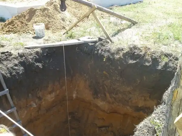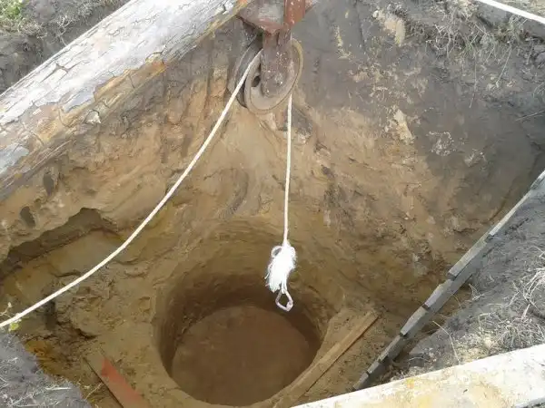 Соорудили кран, для подъема ведер с грунтом из ямы