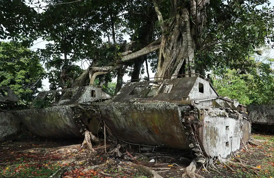Заржавевшая техника относится к конфликту на Тихоокеанском театре военных действий в период с 1941 по 1943 годы. Самолеты, артиллерия, танки и обломки судов, как пишет Daily Mail, принадлежат Японскому императорскому флоту и войскам США.