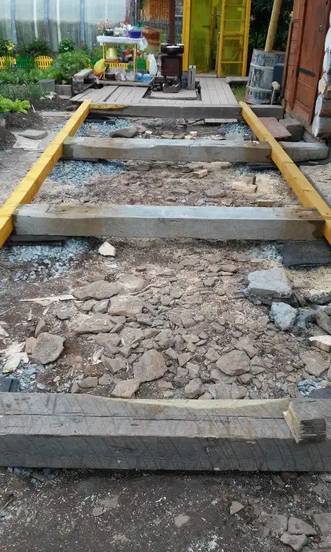 На тумбы кладём шпалы и врубаем нулёвой цикл.