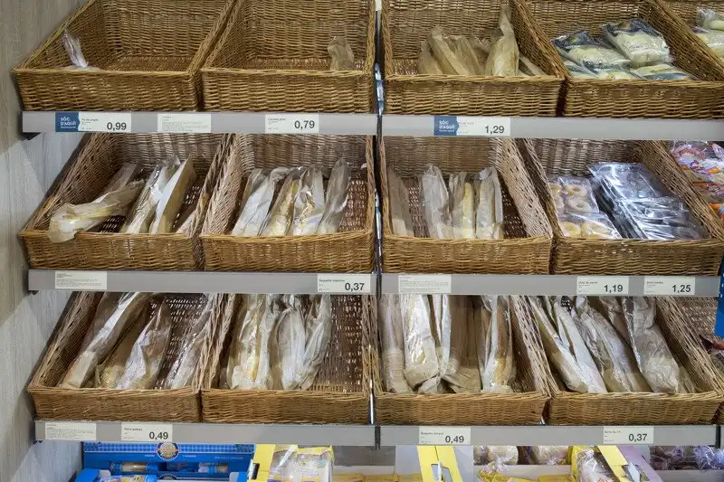 Самый дешевый хлеб от 0,37 евро (28 рублей), а дорогой - 1,29 евро (97 рублей).