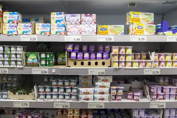 Молочные продукты и йогурты от 0,79 евро (59 рублей) за упаковку.