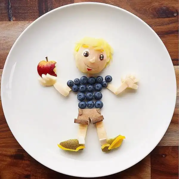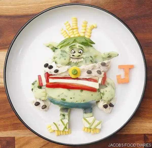 Родители на всё пойдут для того чтобы их ребенок правильно питался. Лалех Мохмеди (Laleh Mohmedi) мама из Австралии, придумала очень оригинальный способ – с помощью кусочков фруктов, овощей и других полезных продуктов она создает на тарелке своего сынишки Джейкоба настоящие шедевры, изображая героев мультфильмов.