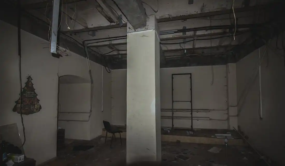В одном из помещений была обнаружена такая картина: наверху кто-то принимает душ, а вода весело льётся в зал из раструба ржавой трубы. Пахнет мылом и шампунями, почти что как в ванной, если не принимать во внимание стойкий «аромат» фекалий, спущенных в подвал ранее.
