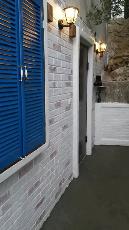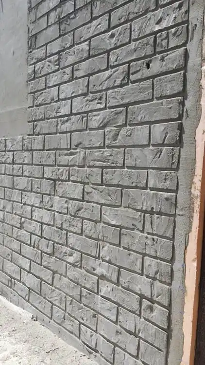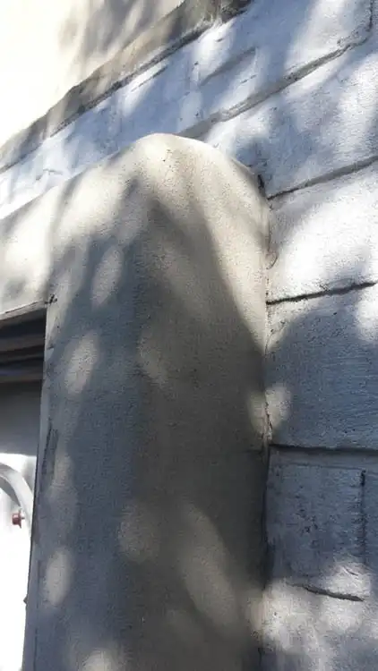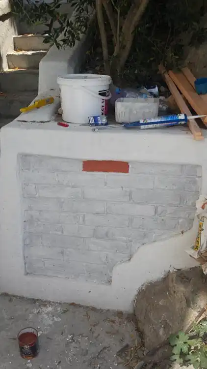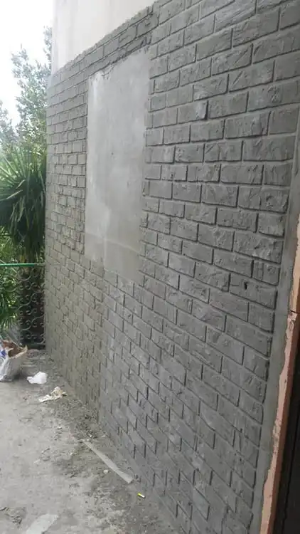 Отштукатурили мне джамшуты фасад дачи и стояла она так пару лет. Нашел в этих ваших интернетах идею, декорирование под кирпичную кладку. Так как стены очень кривые, решил состаривать «молодой» фасад.
