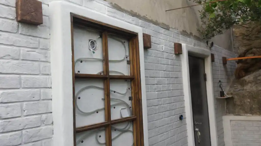 На стороне фасада у меня только входная дверь на этаж. Решил запилить окно)) Расчертил и клеем все замазал