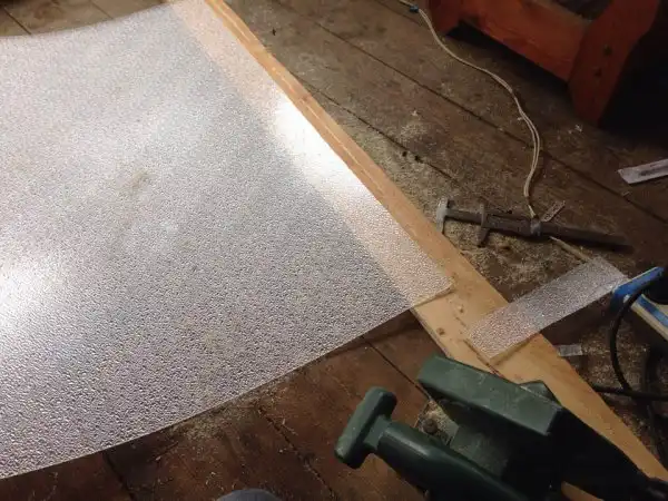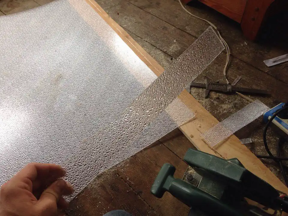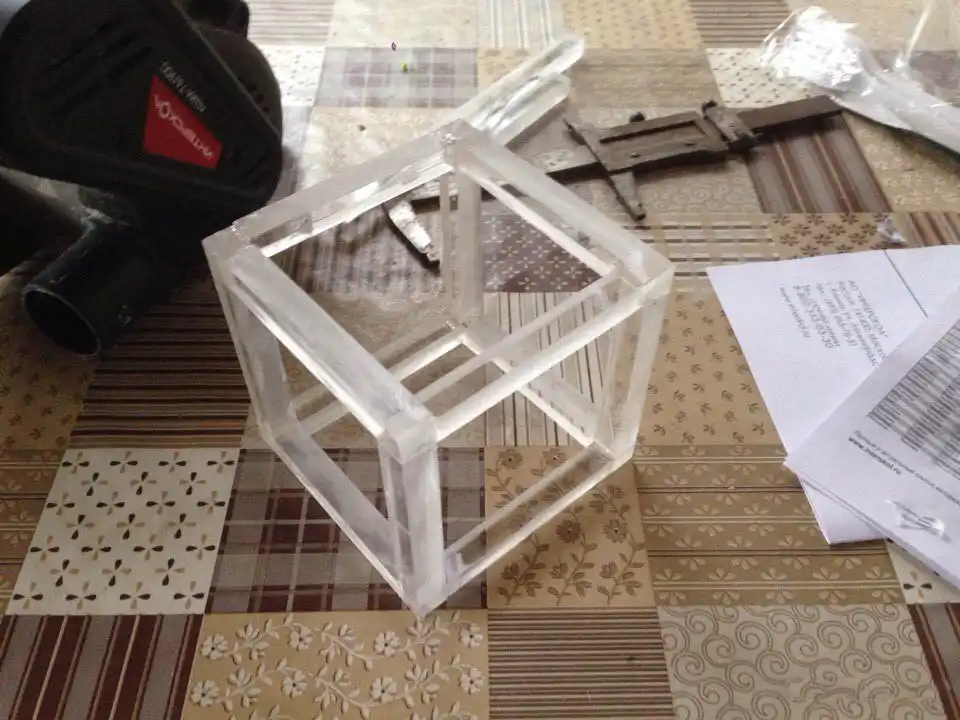 дальше взял пластик "колотый лед" и вырезал из него квадраты ,в размер кубика