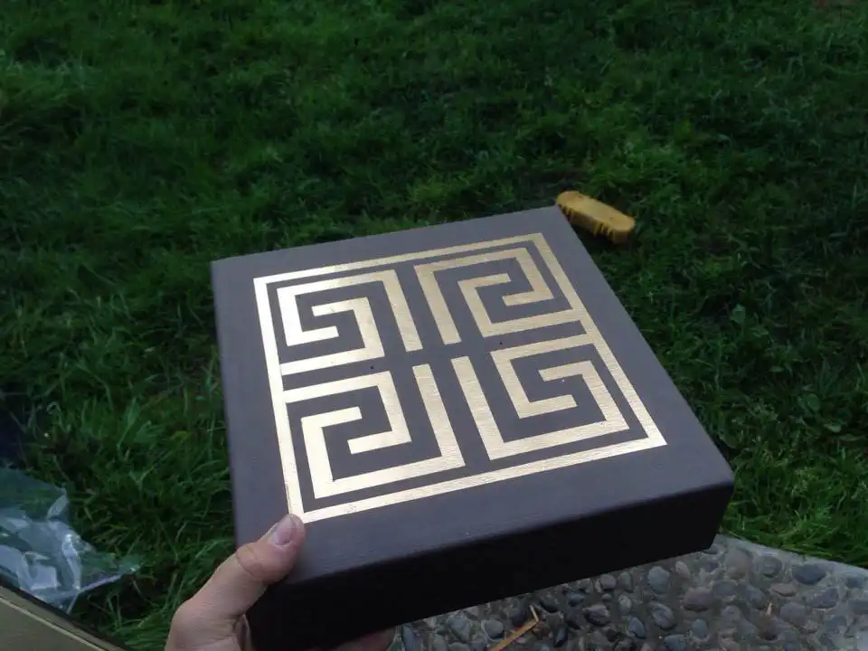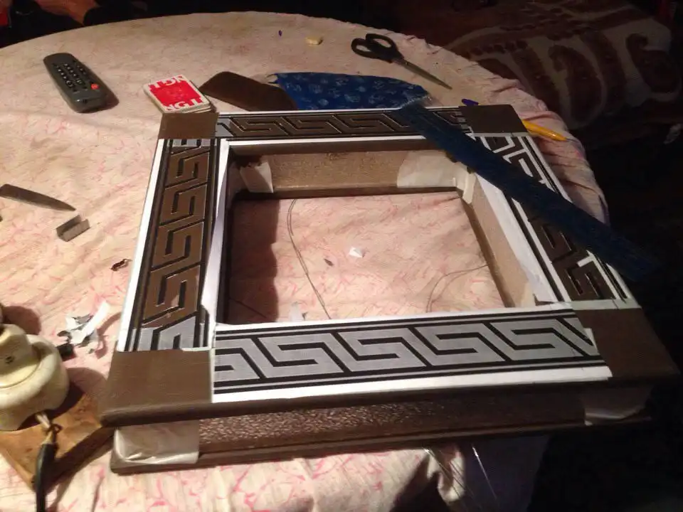 опять же , смотрелось все пустовато и я решил нанести узор . Для этого распечатал его на принтере и с помощью скотча , наклеил на люстру . Потом все лишнее вырезал лезвием , ну и дальше можно красить .