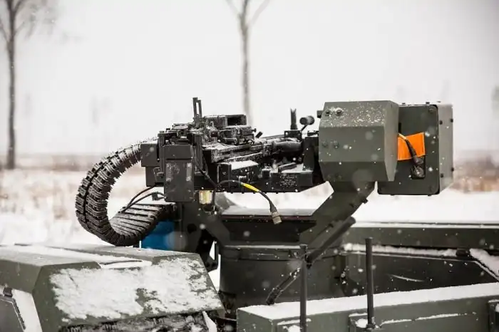 В наше время все больше армий хотят получить в помощь минитанк с дистанционным или полностью автоматическим управлением. Недавно такой танк был разработан для армии Эстонии. Небольшой бронетранспортер на гусеничном ходу оснастили крупнокалиберным пулеметом CIS 50MG, способным поражать цели на дистанции более 1,5 км. Танк способен двигаться с максимальной скоростью 35 км/ч и перевозить грузы до тонны. Далее предлагаем взглянуть на новейшую боевую машину в действии.