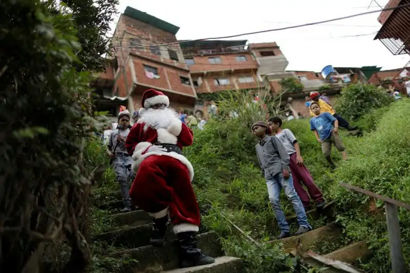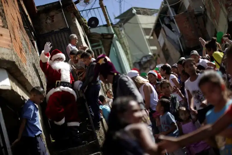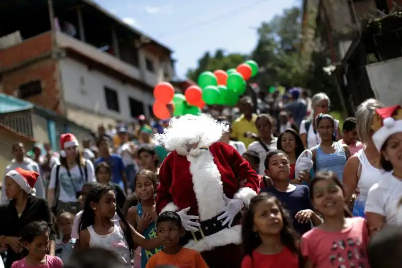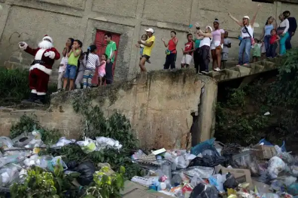 Сейчас в Венесуэле очень тяжелая экономическая ситуация, но дети остаются детьми и ждут Рождественское чудо. Они пишут письма Санта-Клаусу и хотят получить подарок. 11 декабря Санта-Клаус посетил жителей трущоб Петаре в Каракасе и подарил им немного Рождественского настроения.