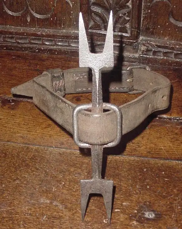 Это не столовый прибор, ежели что. Само устройство 16-17 веков, из коллекции замка Rodenegg, Австрия. Степень натяжения ремня регулирует усилие с которым вилочки упираются в подбородок и грудину. Клиент таким образом, по желанию пытающего, мог испытывать всю гамму чуйств - от легкого дискомфорта, до страшных мучений. В книге "La storia dell Inquisizione", Карла Хавоша, говорится о том, что мало кто из еретиков выдерживал более суток в таком положении, на максимально затянутом ремне. Причем палачу вообще не надо было напрягаться)))). Применение девайса на последней фоточке. Честь изобретения устройства приписывают Игнатию Лойоле.