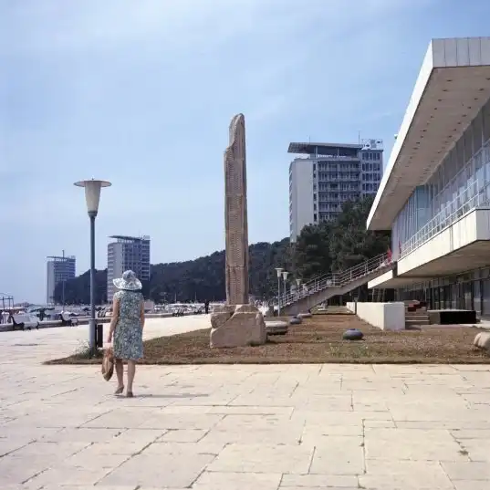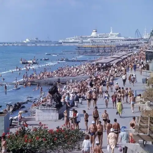 Автопоезд, курсирующий между пляжем и пансионатами, Пицунда, 1973 год.