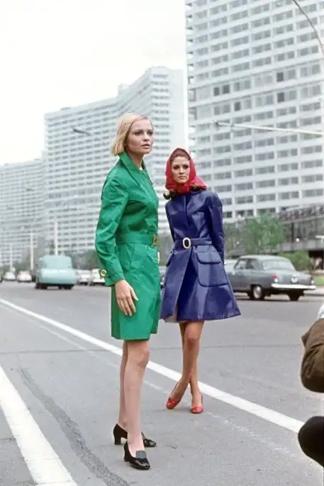 Манекенщицы демонстрируют новую коллекцию одежды на проспекте Калинина в Москве, 1969 год
