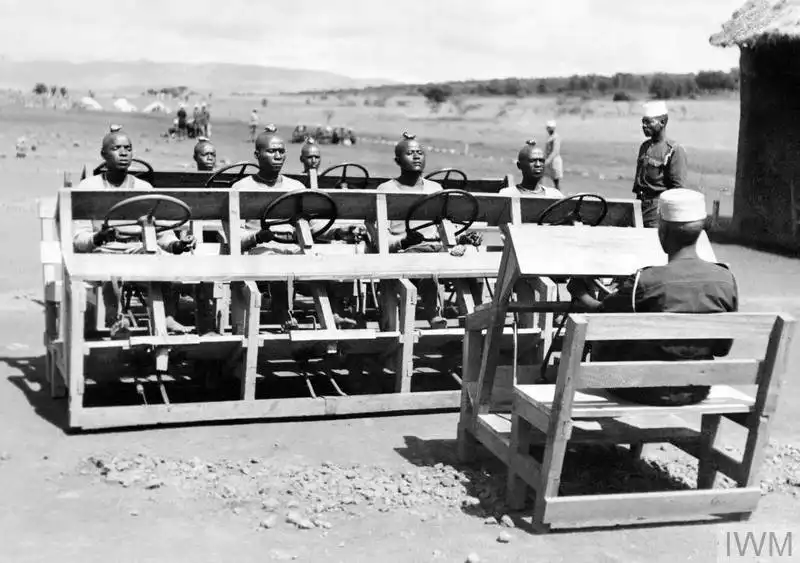 Обучение вождению королевских африканских стрелков (King's African Rifles), 1943 год.