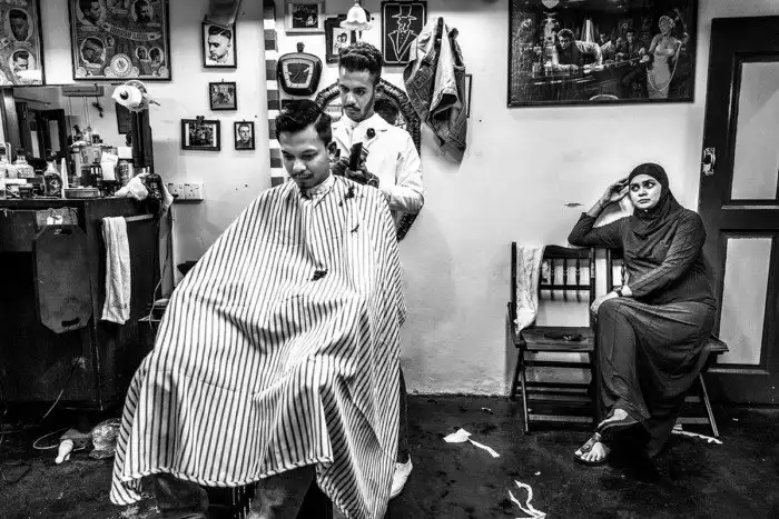 Элисон Кэхилл, Великобритания, победительница в номинациях «Новый талант», «С глазу на глаз». Фитри работает с клиентом в парикмахерской Son & Dad Barbers в Джорджтауне, Пенанг, Малайзия.