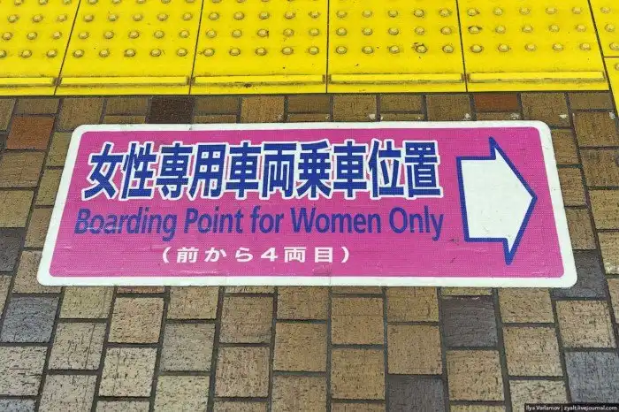 В вечернее время обычно последний вагон состава становится исключительно женским, так как подвыпившие офисные работники иногда не против погладить женские попы (японские женщины настолько стыдливы что часто молча терпят).