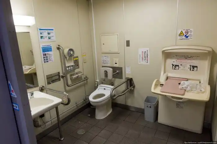 Абсолютно на всех станциях есть туалеты, всегда очень чистые, причем наряду с обычными обязательно наличие кабинки для людей с ограниченными возможностями.