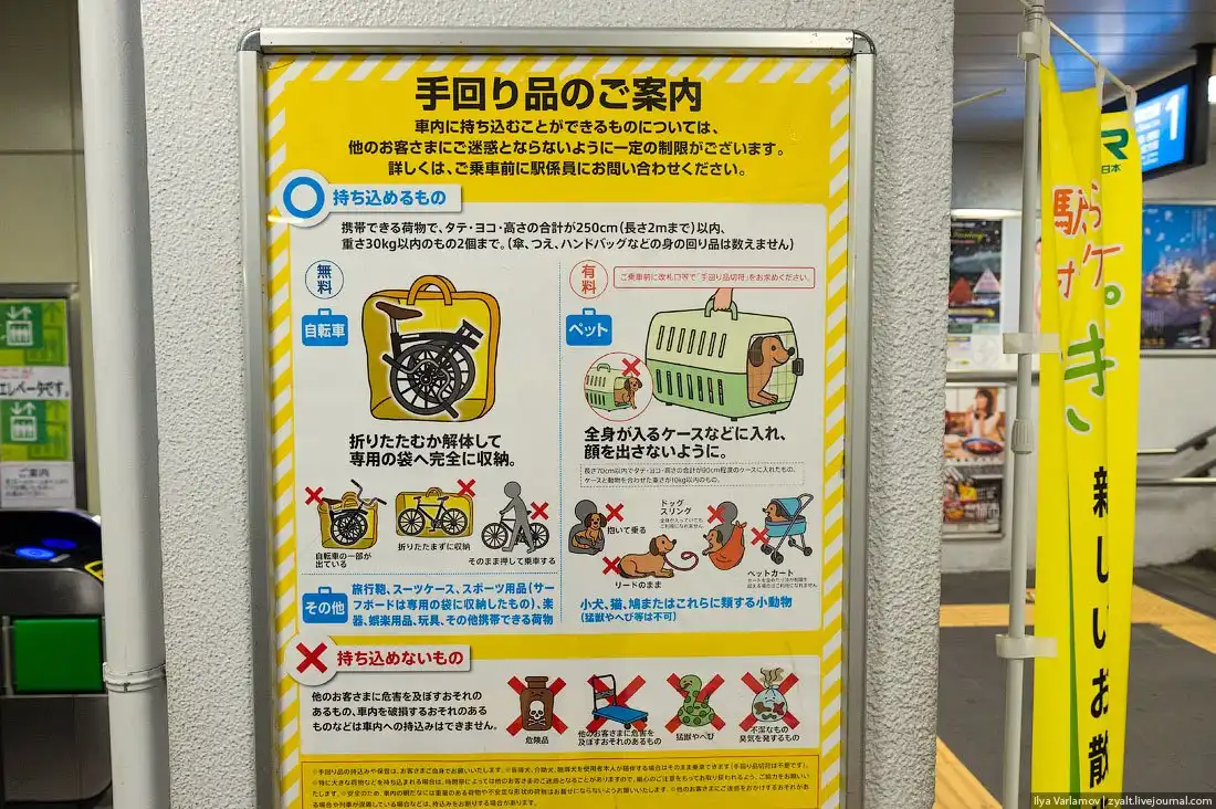 Много оповещений и в самих поездах, предупреждают об участках с резкими поворотами, о возможности внезапной остановки поезда, в дождливые дни просят не забывать зонтики.