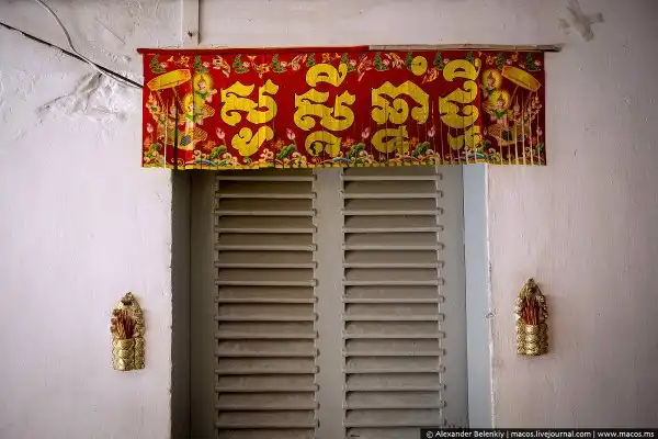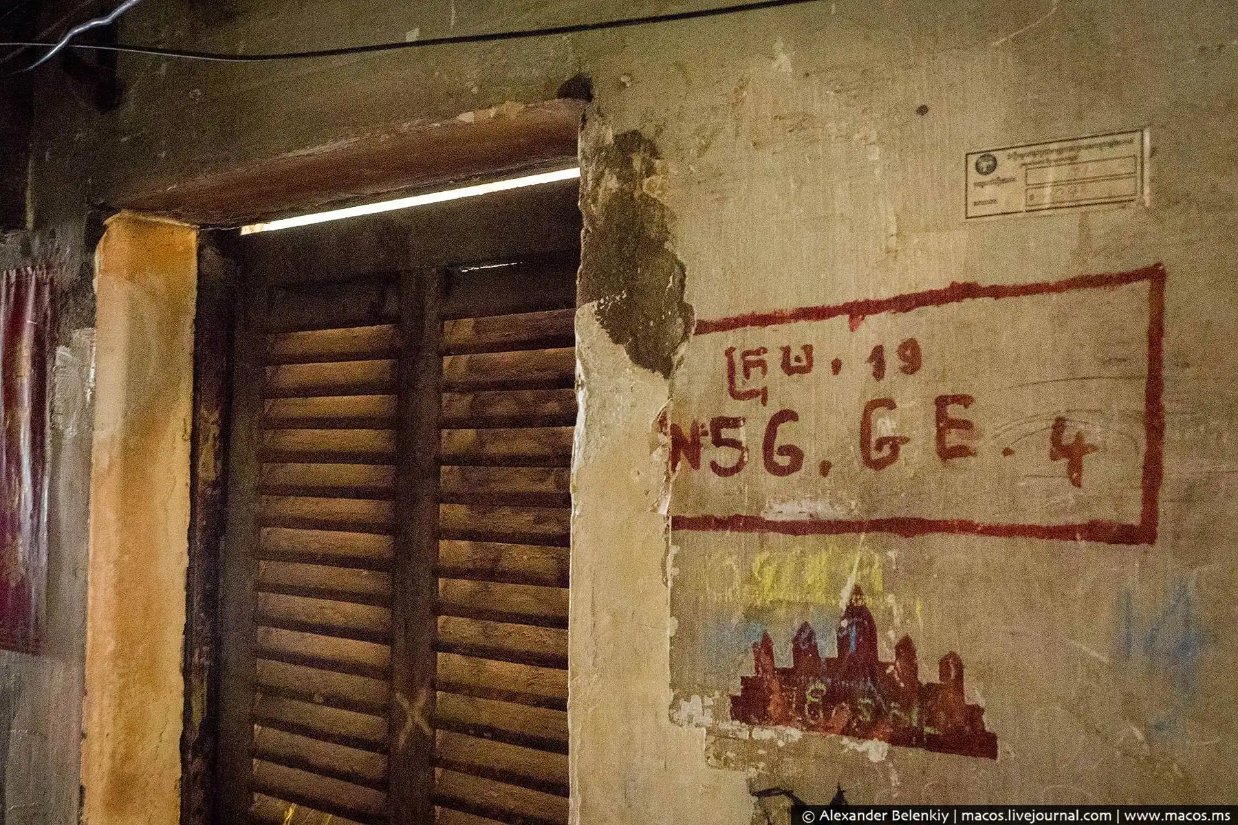Номера квартир нарисованы краской на стене. Кто-то начертил рядом силуэт Ангкор Вата, древней кхмерской столицы и главной туристической достопримечательности Камбоджи. Для местных - святейшее место.
