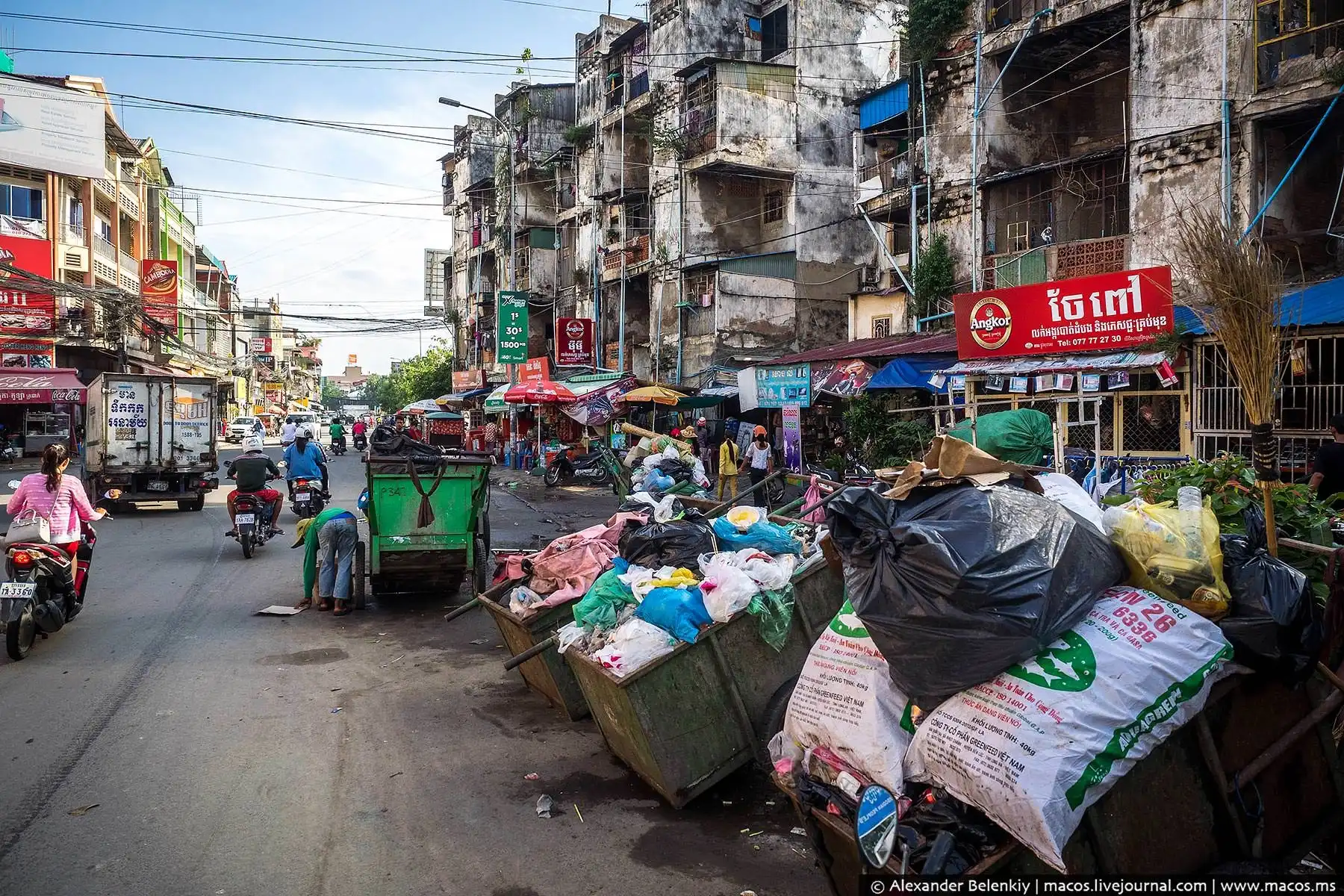 В путешествиях я избегаю туристических мест, но ищу что-то потайное, настоящее, отражающее жизнь страны и города. Места эти не всегда радужные и весёлые, а в бедных государствах чаще всего откровенно помоечные. Но Белый дом в Пномпене - почти на грани полного ада.