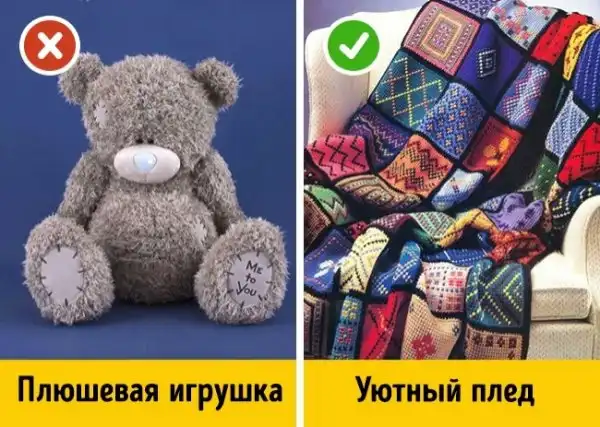 Плюшевых мишек можно заменить уютным пледом или теплым домашним костюмом с небанальным принтом.