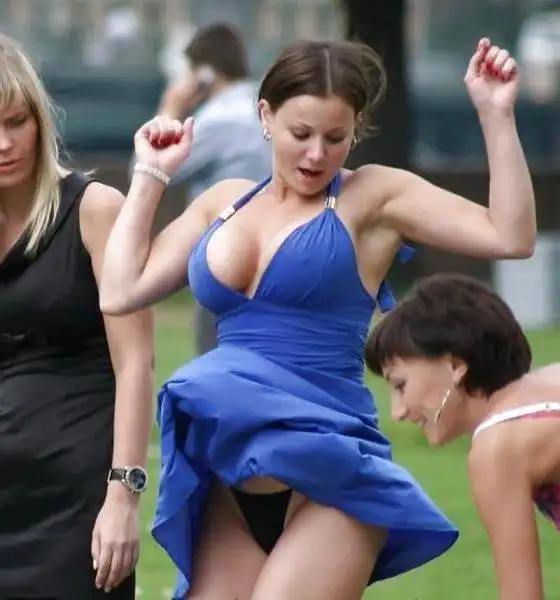 Ветер показал то, что должны были прикрыть от посторонних глаз платья и юбки этих девушек. Справедливости ради, отметим, что далеко не все из них чувствуют неловкость в связи с этим досадным недоразумением)