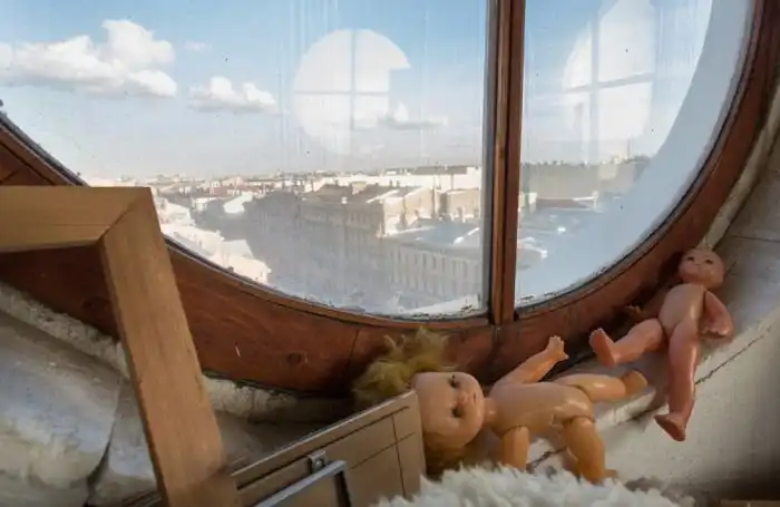 Это уютное местечко расположено в Санкт-Петербурге по адресу Загородный проспект, 9. Старый дом треугольной формы находится на дорожной развилке и увенчан башней, наверху которой расположена мастерская художника Семаса.