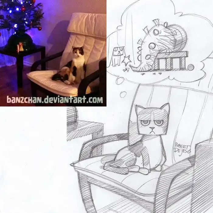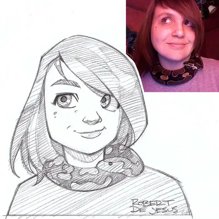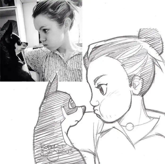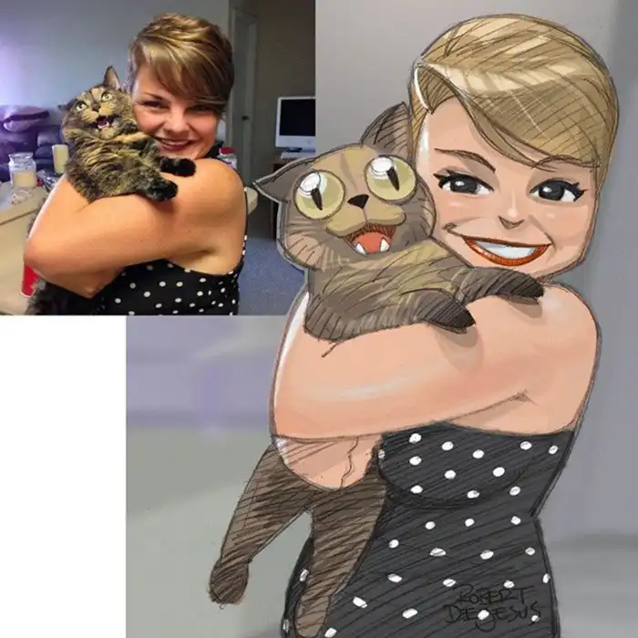 Американский художник-иллюстратор Роберт ДеДжезус обожает мультфильмы. Поэтому его хобби - превращать людей и животных в мультипликационных персонажей. "Я со школы обожал рисовать в стиле аниме и манга, - рассказывает Роберт. - И до сих пор прежняя страсть не оставляет меня". По словам Роберта, у него уже стоит очередь клиентов, желающих получить портрет в таком стиле. На сей раз Роберт представил публике мульт-портреты людей с их питомцами.