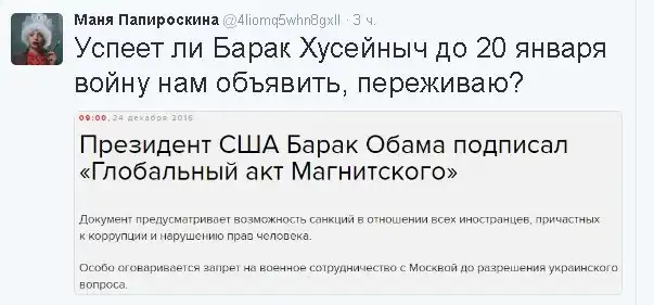 — Честно скажу, вот вы живете в Америке, вы человек нормальный, адекватный, да? Вот зачем вы оскорбляете тех людей, с которыми вы даже не общались и не знаете, кто это?