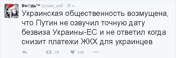 — Почему холатый патриот не на дэржавной мове размовляет, а пользуется монголо-кацапьским наречием? Уж не зрадник ли он? И почему он по Перу прохлаждается, а не проявляет свои патриотизм и ненависть к