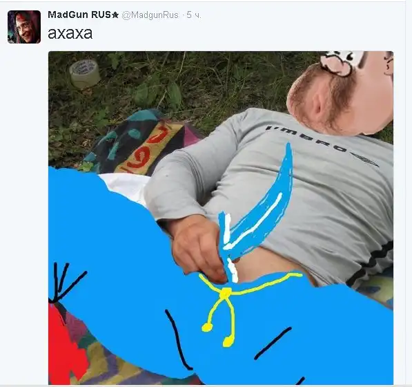 После записи разговора с россиянином, Дубовский вставил в видеоролик фотографию порванной футболки. В итоге от оскорбительной надписи остались лишь буквы В«йло!В» и слово В«русскийВ», написанное на английском языке.