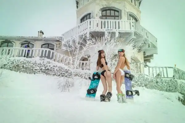 Россиянки прокатились на сноуборде в одном нижнем белье