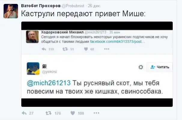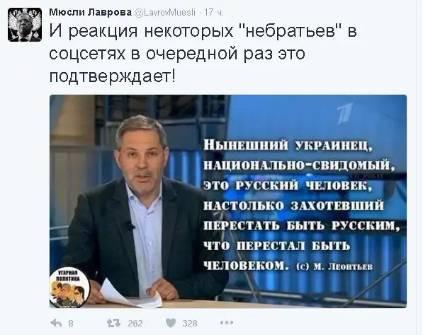 А что не так? О_о есть украинцы, мы с ними братья и друзья. А есть фашистско-бандеровская мразь, которую нужно уничтожить.