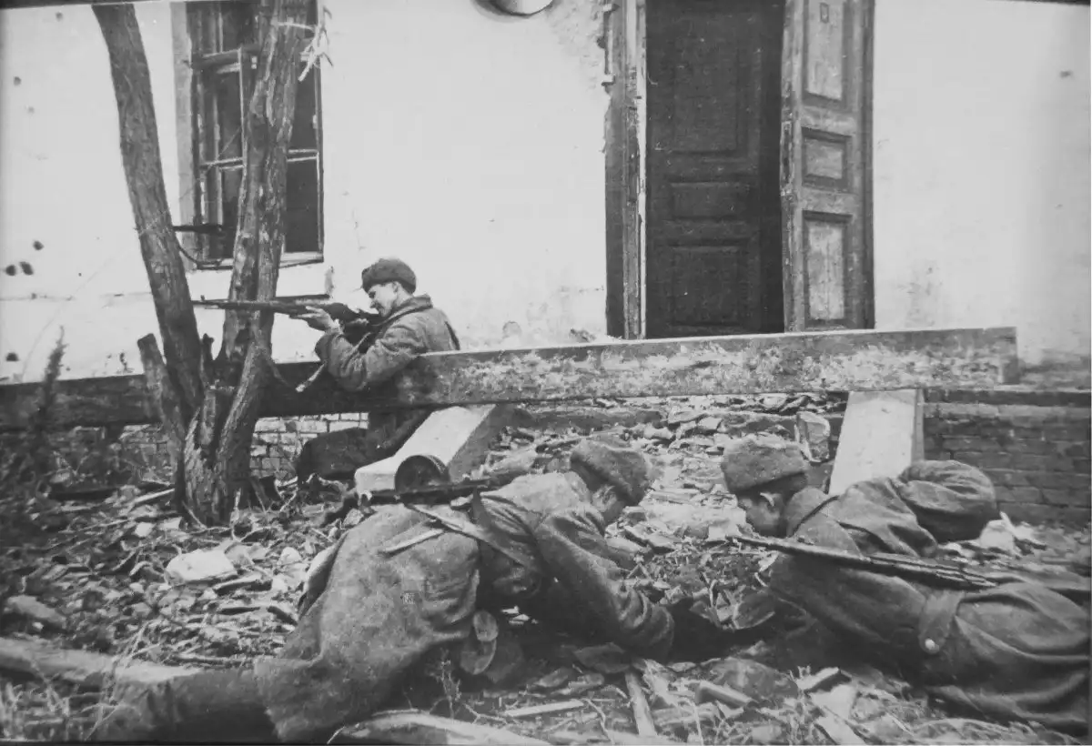 Герои Советского Союза старший лейтенант Федор Яковлевич Спехов (1905—1945), старший политрук Александр Васильевич Котцов (1912—1996), капитан Григорий Яковлевич Борисенко (1901—1972) и капитан Василий Алексеевич Копцов (1903—1943). 1939 год.