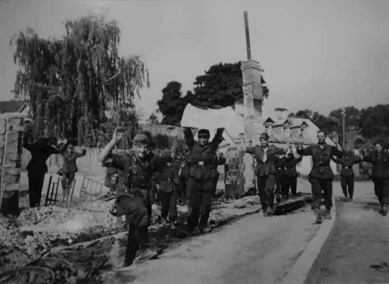 Немецкие солдаты сдаются в плен в Вильнюсе.