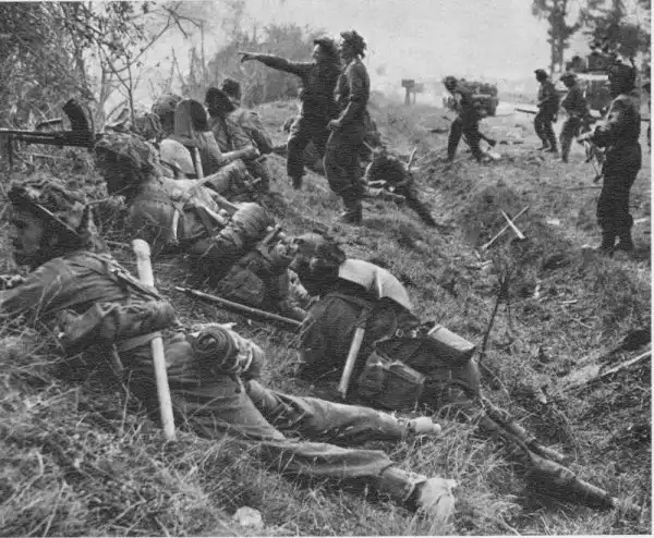 Британская пехота на позиции в районе города Каньи. 1944 год.