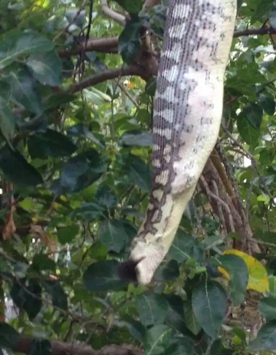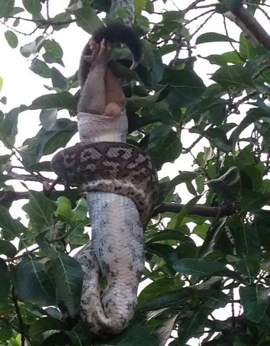 Эти кадры были сделаны жителем австралийского города Таунсвилл Дэвидом Рейнольдсом (David Reynolds) через окно его спальни. Увидев питона на дереве, растущем на заднем дворе своего доме, мужчина решил сделать несколько снимков и в итоге стал свидетелем обеда пресмыкающегося. Дело в том, что питон сумел поймать взрослого опоссума, а чтобы его проглотить ему понадобилось целых два часа.